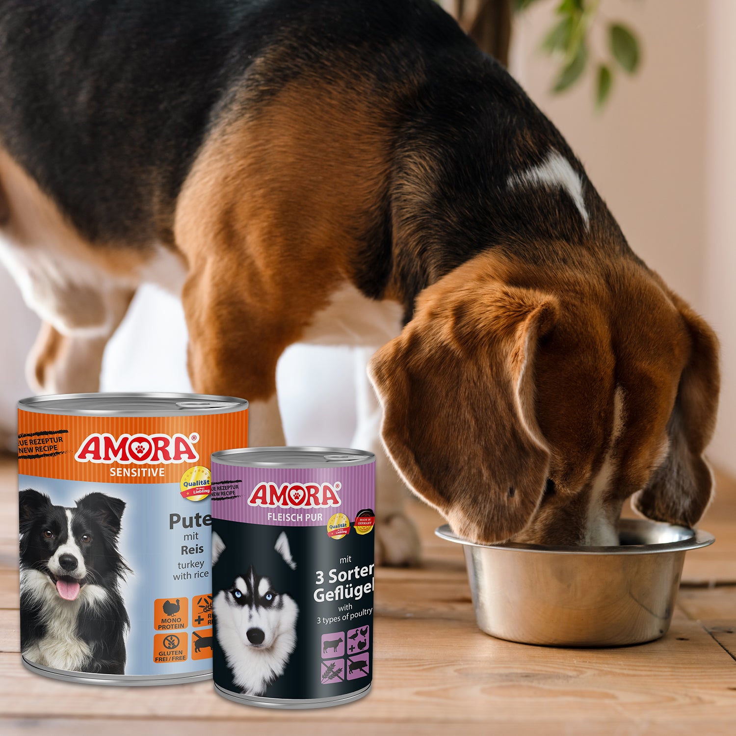 - AMORA Sensitive ist eine besonders ausgewogene Vollnahrung, die ausschließlich aus Fleischstückchen und Innereien hergestellt wird. AMORA Sensitive enthält keine Aroma-, Farb- und Konservierungsstoffe. AMORA Sensitive ist durch seine erstklassigen Rohstoffe sehr gut verträglich und hoch verdaulich. – Hergestellt in Deutschland