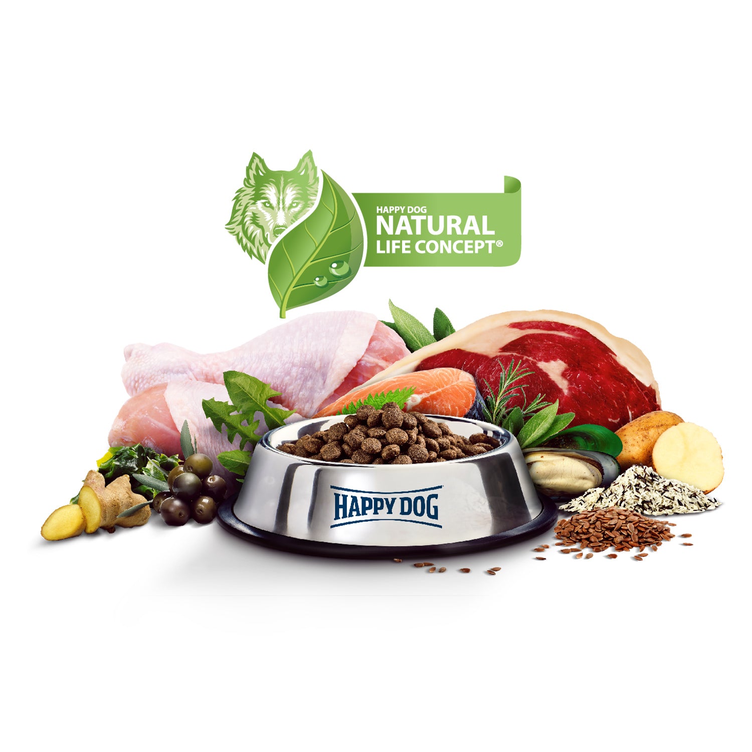 Das Happy Dog Natural Life Concept® bietet deinem Hund eine ernährungsphysiologisch sinnvolle Kombination aller lebensnotwendigen Vitalstoffe mit natürlichen Zutaten. So werden Stoffwechsel und der gesamte Organismus optimal und artgerecht unterstützt – ernährungsphysiologisch belegt nach dem Vorbild der Natur.