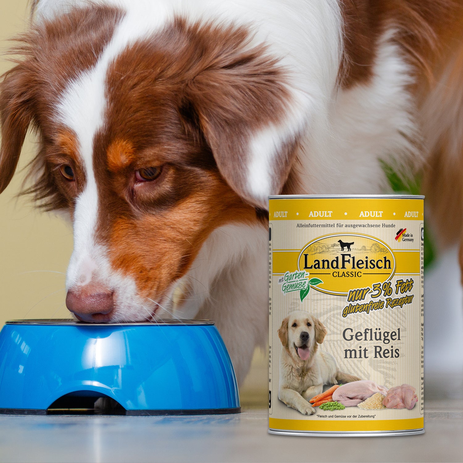 Frei von künstlichen Zusatzstoffen, sorgt das Nassfutter von LandFleisch für eine naturnahe und ausgewogene Ernährung, die deinen Hund gesund und glücklich macht.