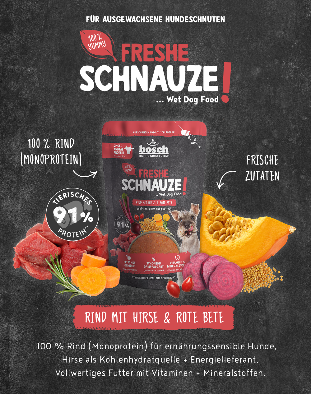 bosch Freshe Schnauze Nassfutter - Rind mit Hirse & Rote Bete 250 g