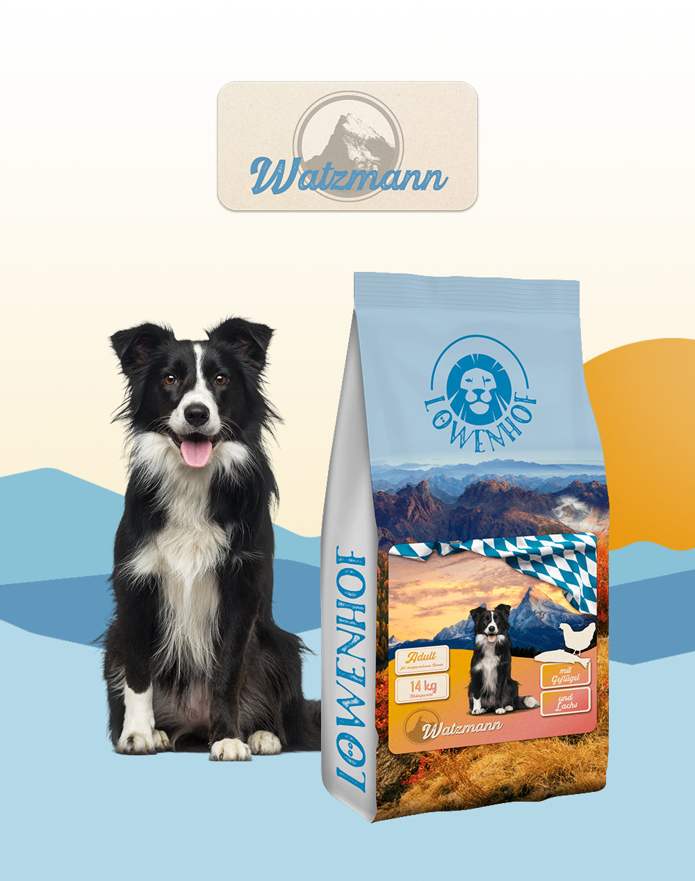 Löwenhof Watzmann Adult liefert mächtig Energie aus herrlich leckerem Geflügel und feinem Lachs.