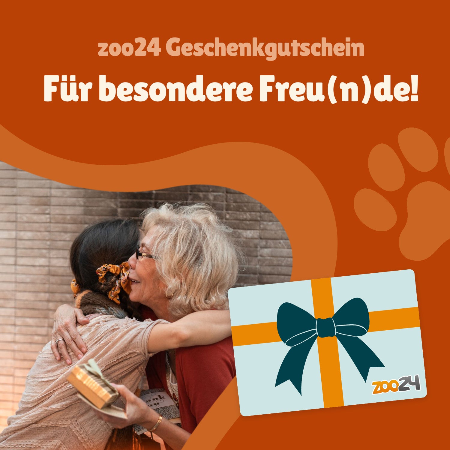Mit unseren zoo24 Geschenkgutscheinen verschenkst du pure Freude – denn Leckereien oder Zubehör für Haustiere kommen immer gut an! Wähle zwischen einem digitalen Gutschein oder einer gedruckten Karte, die du per Post erhältst und schenke deinen Liebsten ein unvergessliches Shoppingerlebnis.