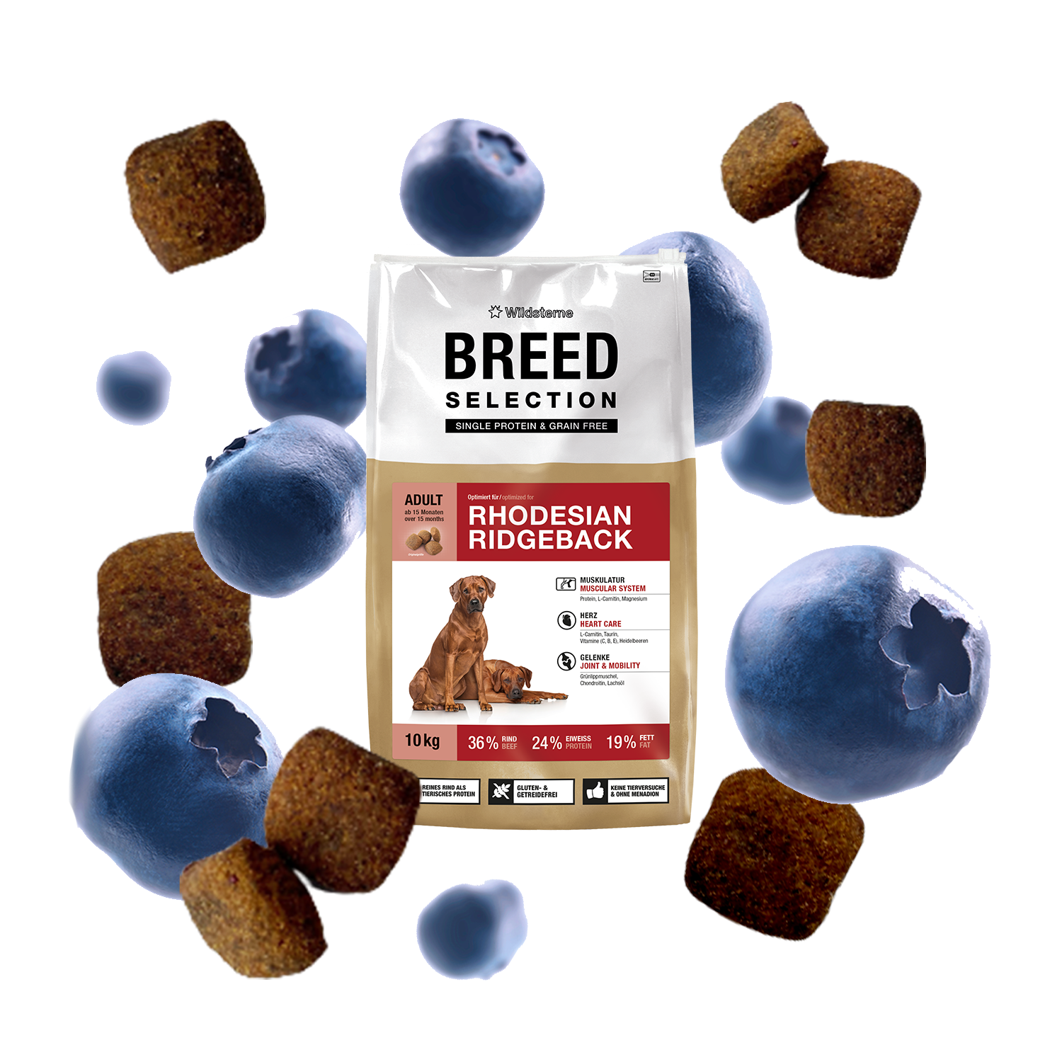 Aus unseren Erfahrungen ergab sich als logische Konsequenz die Entwicklung von Spezialfutter für einzelne Rassen. So entstand die Wildsterne Breed Selection für eine optimale funktionale Versorgung, die auch auf rassetypische Gesundheitsprobleme oder Eigenheiten eingeht und durch die Verwendung von reinem Rind auch für viele Allergiker geeignet ist.